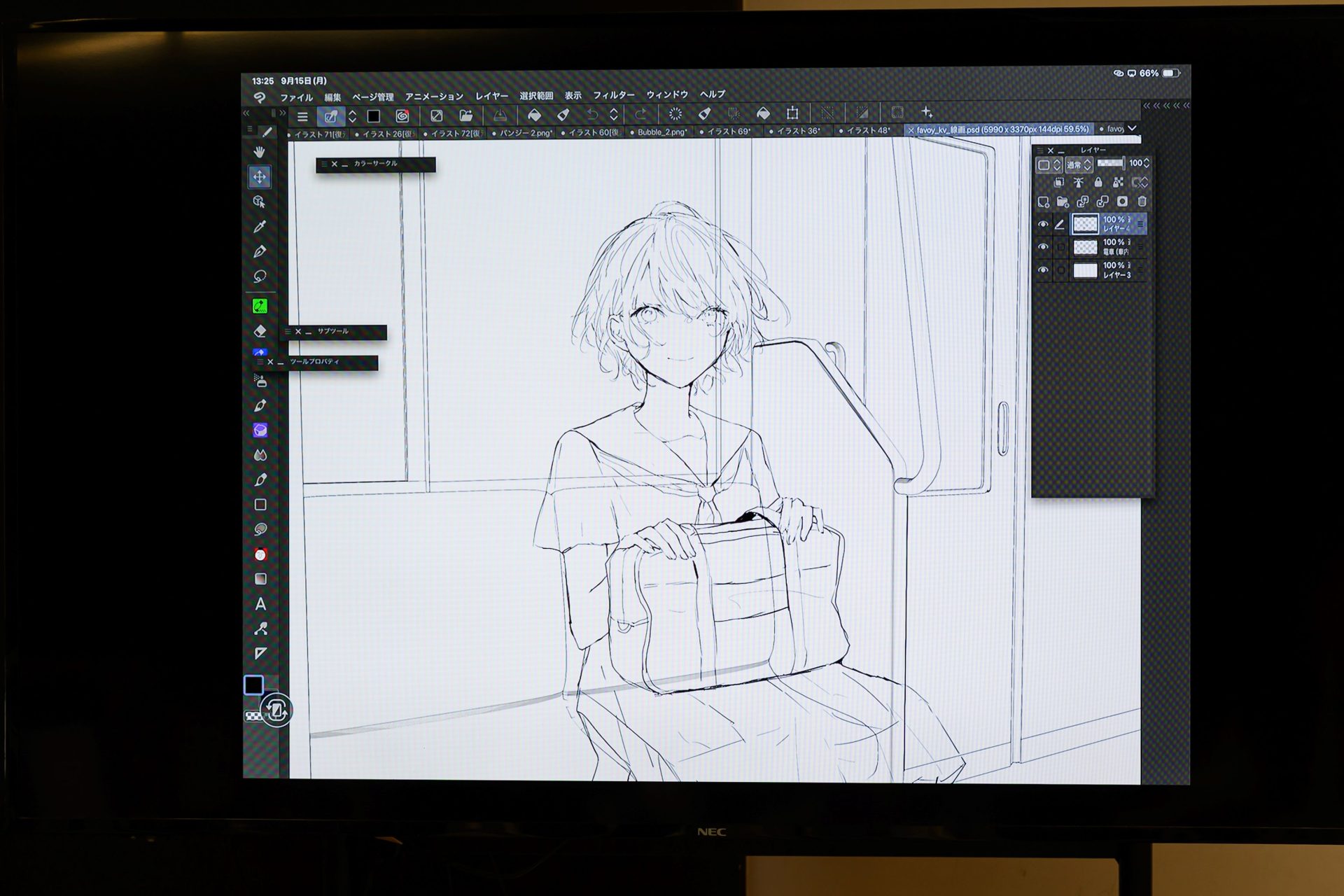 受講生は、この線画に「CLIP STUDIO」というソフトを使って「色」を塗っていきます!