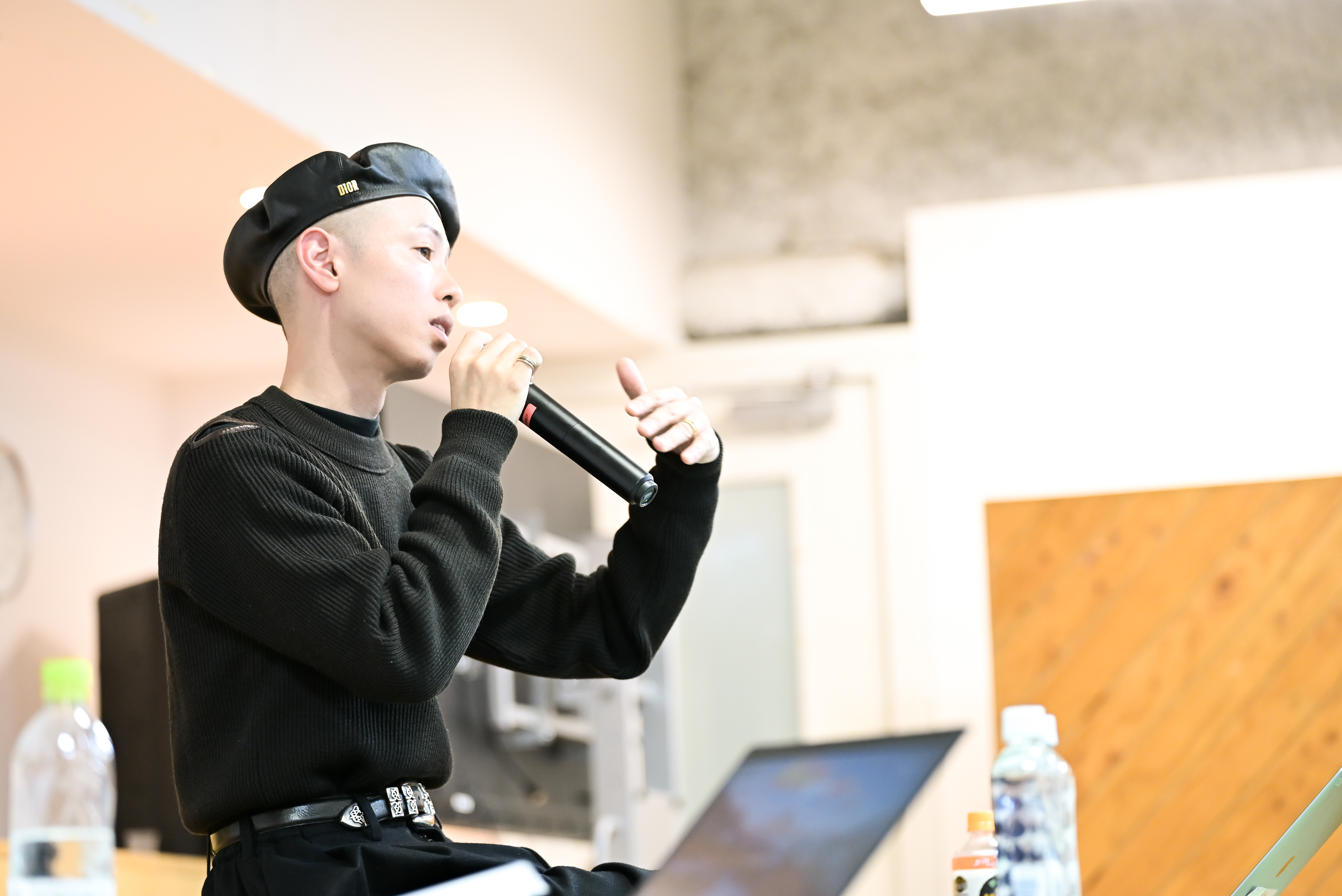 TEPPEI講師「一つひとつのお仕事に対して、毎回感じるべきだと思います。自分の納得できるレベルを高めるか、僕らはサービス業なので、『発注して良かった』と思ってもらえるように遂行します。自分が納得できずに帰るということは、10年以上ないです。ただし、10代のときはそんなことは思っていなかったです。プロとして生活をしていて競争社会に身をおいているからこそ、こういう価値観が板づいていたと思います。世界観の話になりますが、映画監督でも画家でも、『この人っぽいな』という人間の奥深くの本質が投影されている要素があると、素晴らしいと思います」