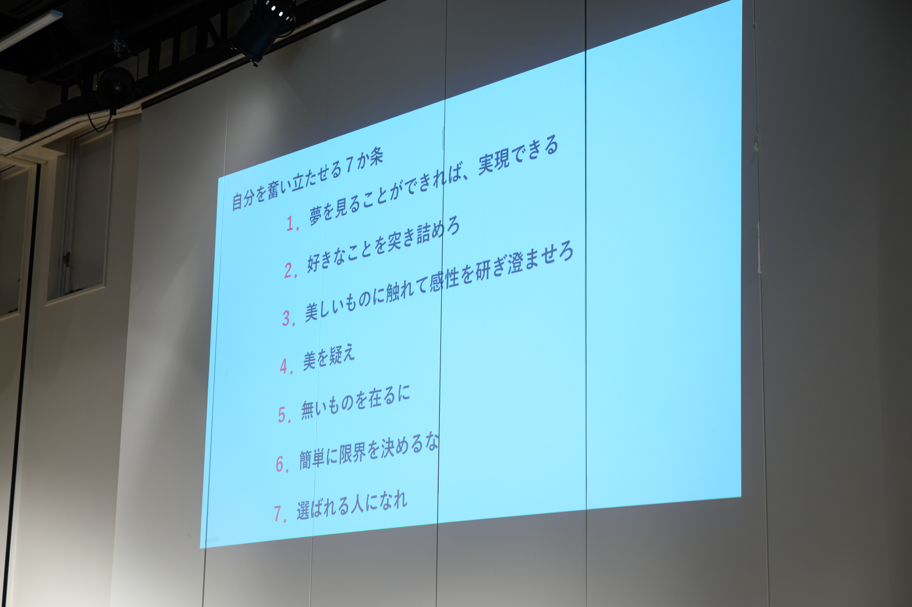 計良講師「時間をかけてその一瞬を作りますが、美はまるで、花火のように儚いです。美は不完全です。曖昧だからこそ生まれる美も、またあります。そして、自分だけの独自の好きを大切にしてください。『これ以上は美しくない』という線引きを持つことも重要です。美は単一の正解ではなく、多様な状態として存在します」