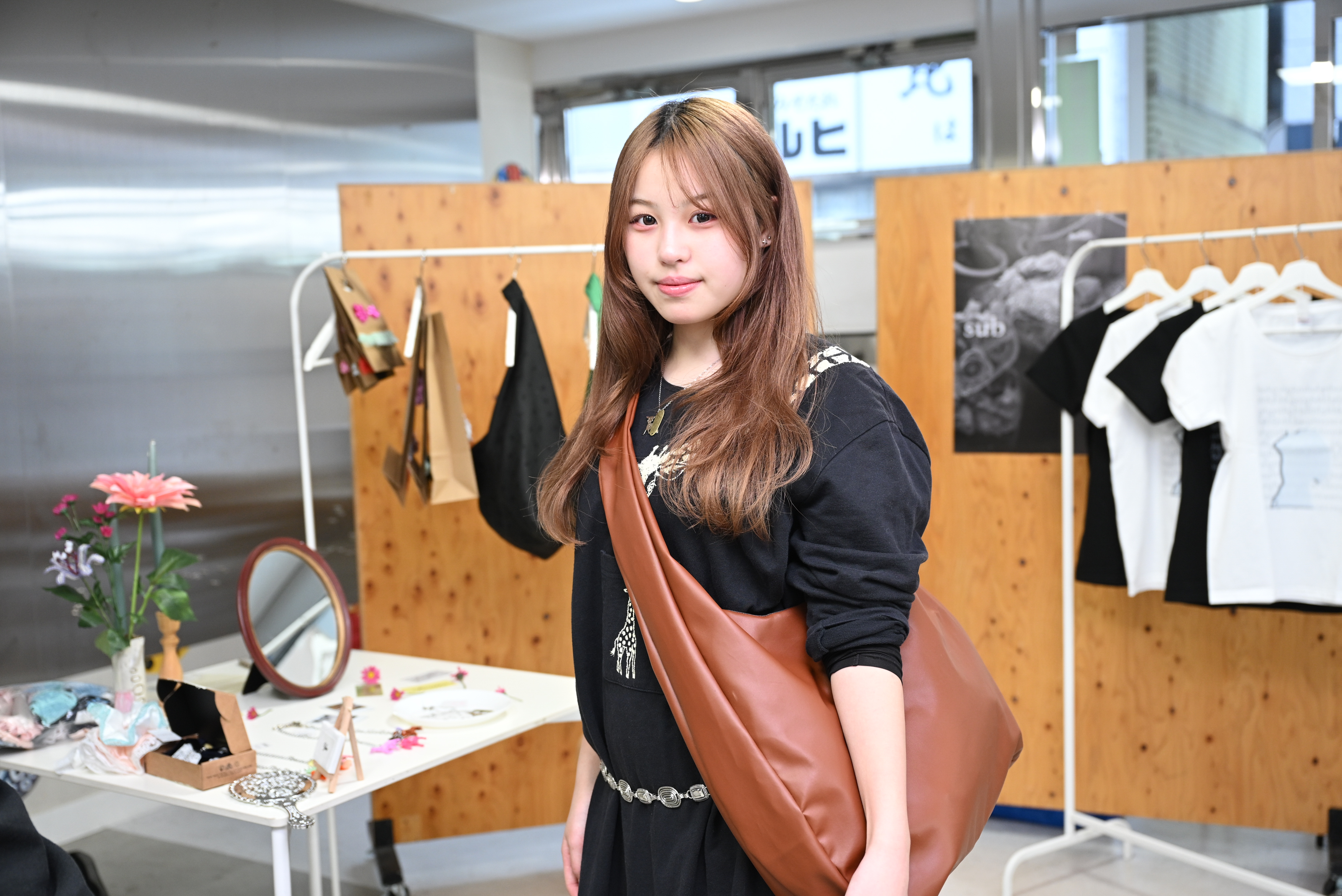 事前に行われた学内審査で、1位を獲得した森谷さんは「Playce.」というアクセサリーショップを運営。「アクセサリーは、性別関係なく身につけられてターゲットの年齢層も幅広いです。着こなしに遊び心を加えてほしいです」とコメント。人気は、ネックレス(10500円)で、開始早々2個売れるなど順調。「プレゼン結果の上位から順に、出店場所を選ぶことができます。入口を入ってすぐの目立つ場所を選びました」とコメント。