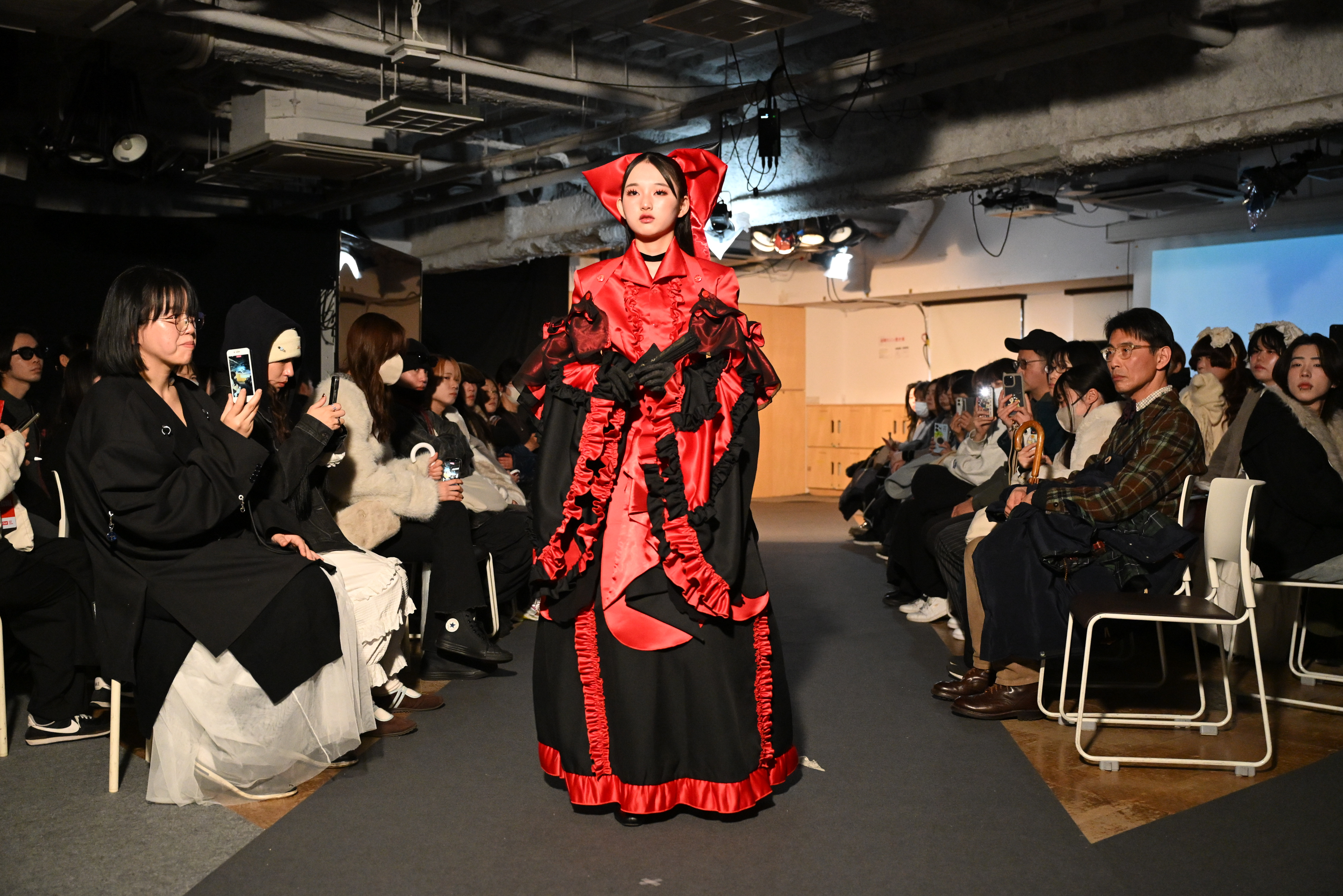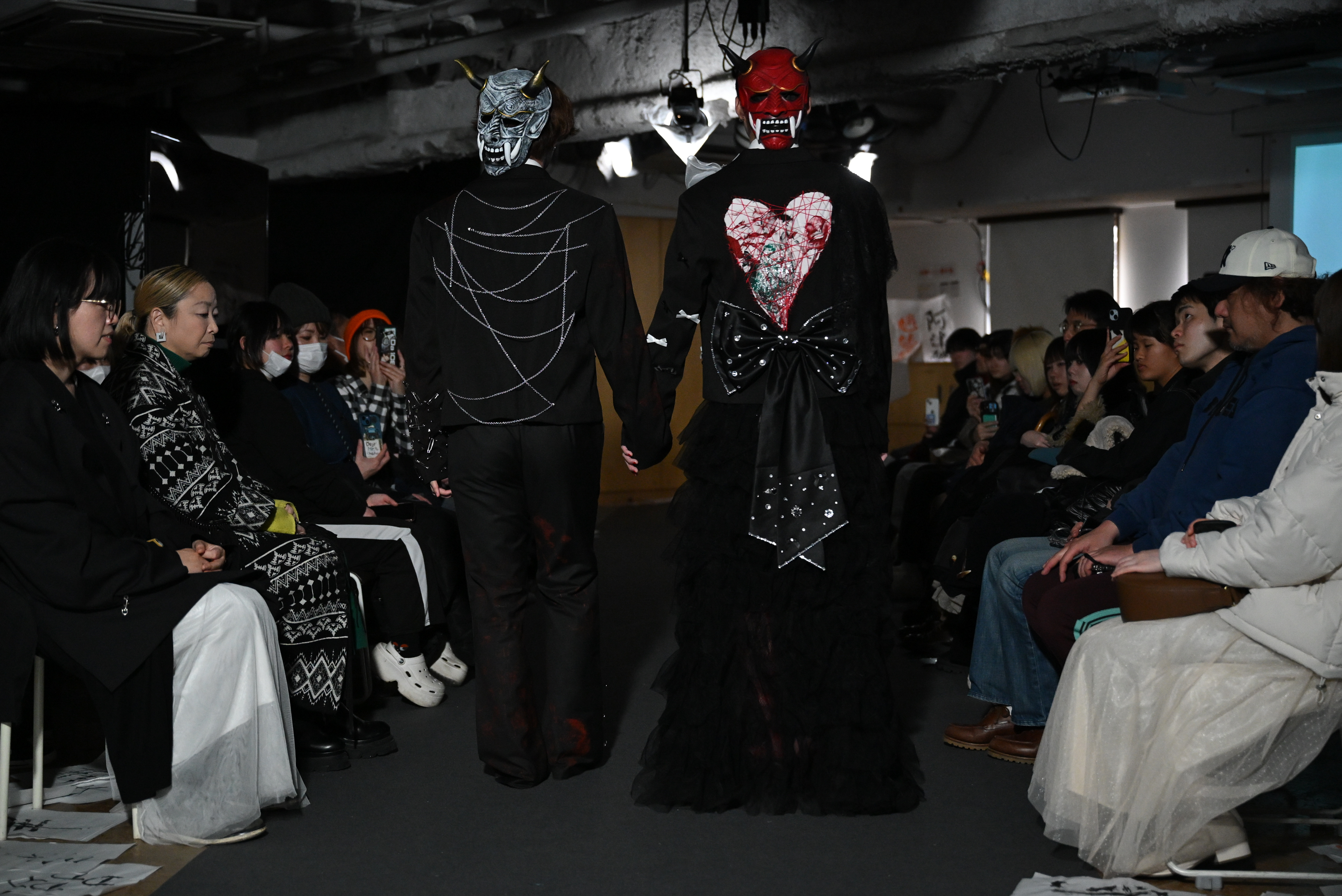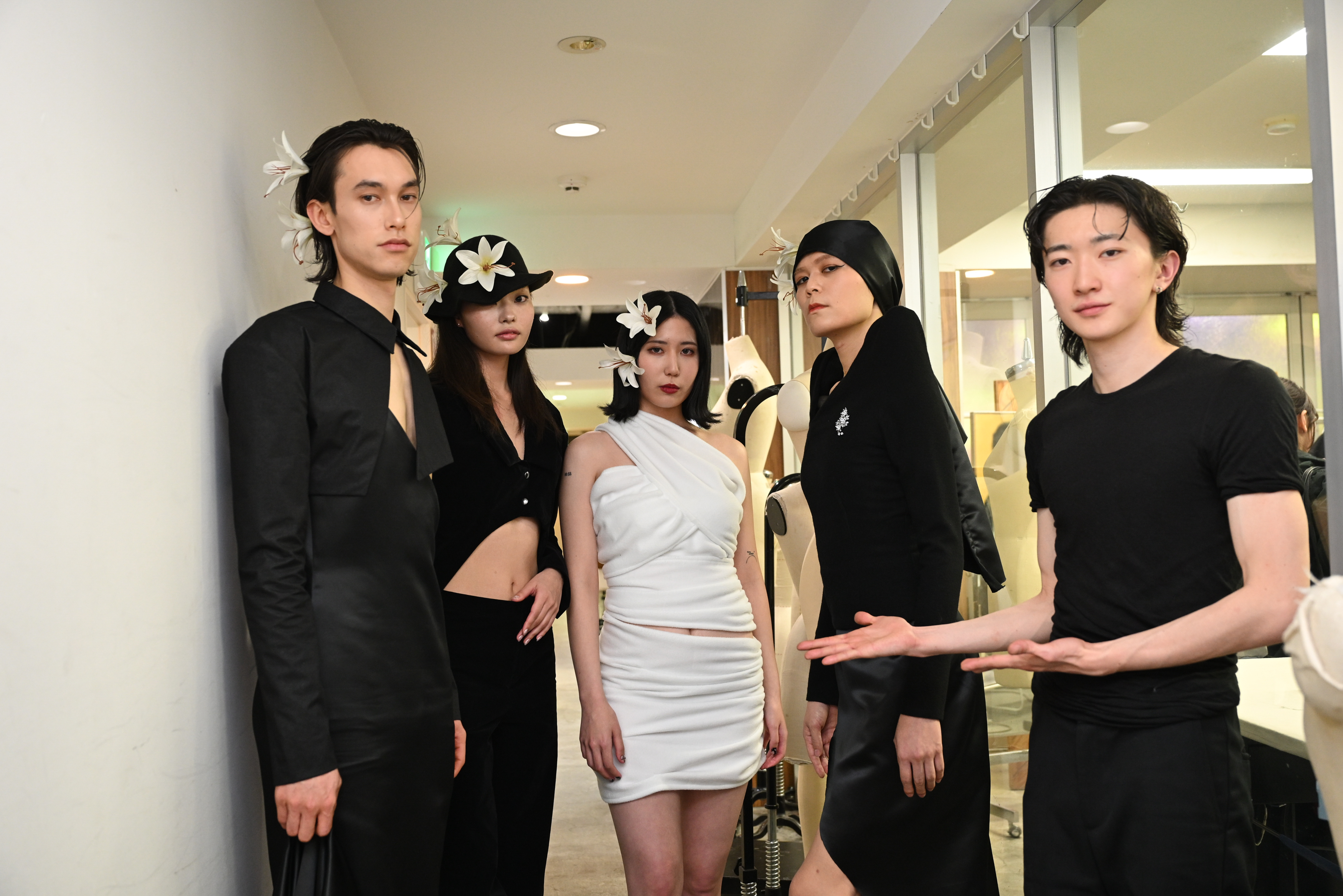 「屍(しかばね)の上に咲く花」(田中さん)は、大人の偽りに憤りを感じる様子がベースのコレクション。猜疑心を黒で、それに対する反骨精神を赤で表現。