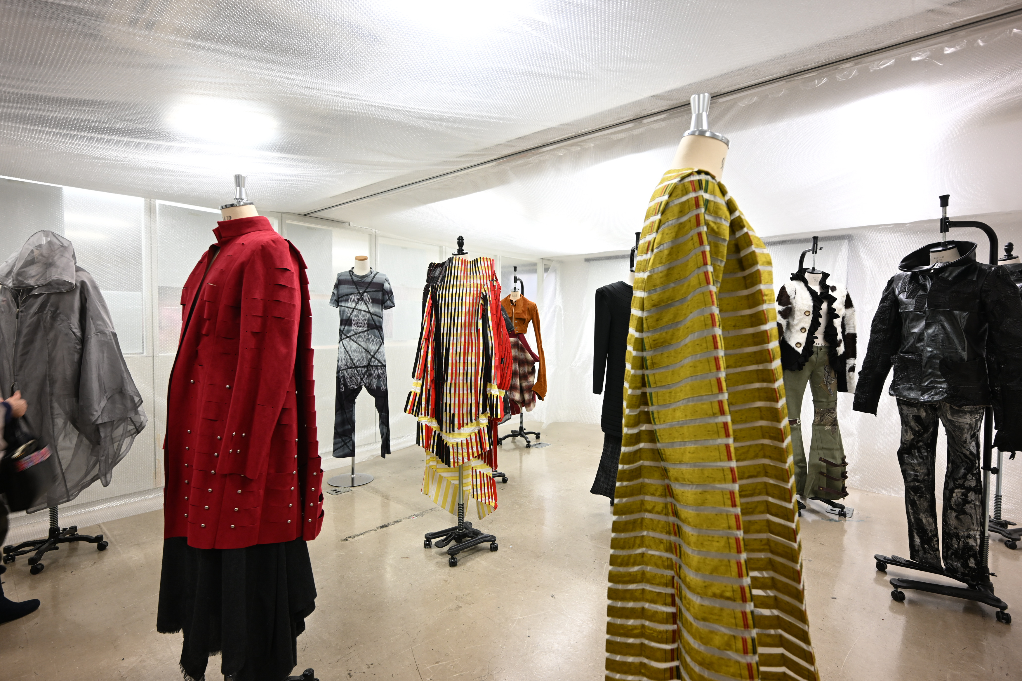 大城一春さんがデザイナーを務める「ISSHUN ISSHUN」アーカイブなどが展示されました。