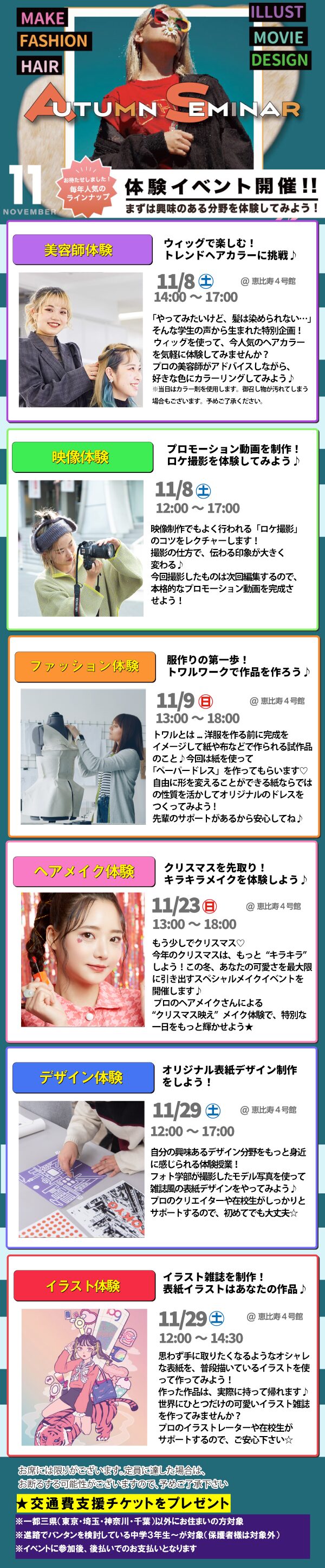 | 対象学部 | ファッション学部、ヘアメイク学部、デザイン学部、映像学部 |