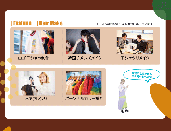 ファッション・ヘアメイク分野5種類の中からお好きな分野を2種類チョイス♪