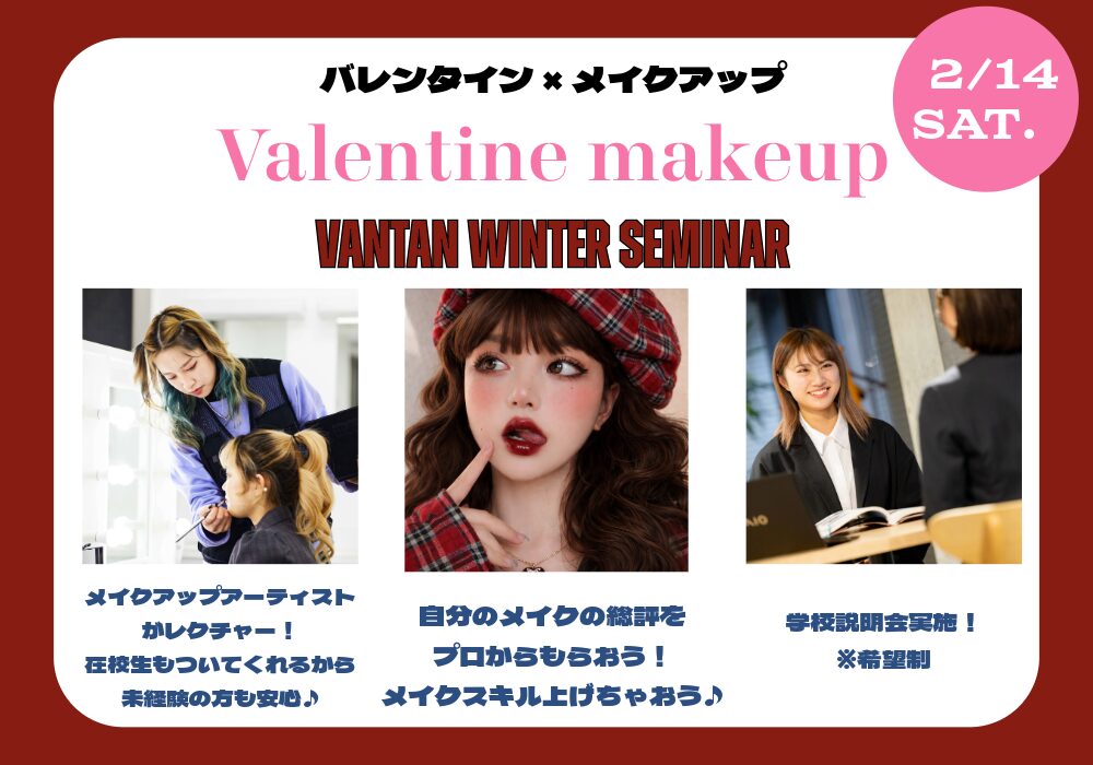 奥行き・陰影・色気を意識したバレンタインメイクを学ぶ体験授業です。