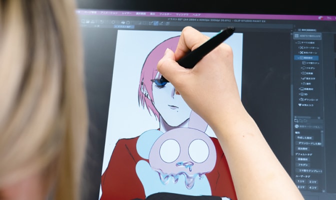アニメーションや動画制作のデジタルツールを学びながら、V Tuberやボカロキャラクターなどのアバターデザインの制作に取り組みます。